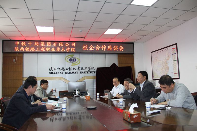 4月25日下午,学院与中铁十局集团有限公司在临渭校区11楼会议室召开校企合作座谈会。学院党委副书记车绪武,副院长王闯,中铁十局集团党委干部部、人力资源部副部长王坤,集团西安分公司人力资源部部长王卫强出席了会议,学院校企合作处、继续教育部负责人参加了会议。