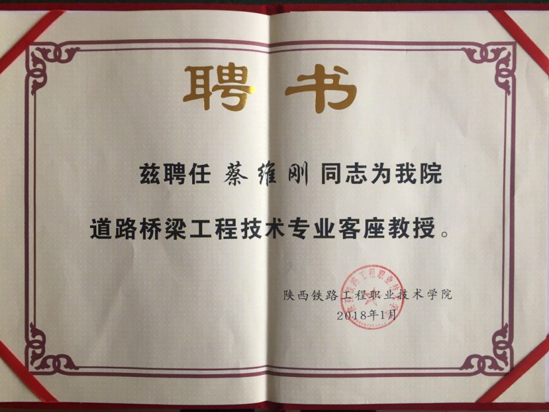 中铁广州工程局副总经理,总工程师蔡维刚被聘为我院道路桥梁工程技术专业客座教授