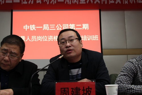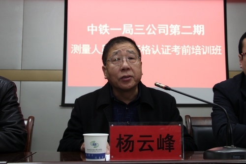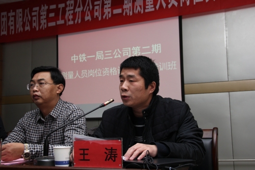 会上,学院杨云峰副书记致辞,热烈欢迎中铁一局三公司人员来我校培训,并对学院的办学情况做了简单介绍。一局三公司周建坡部长阐述了此次培训的目的与意义,并对学院给予了充分肯定并表示感谢,希望能够加强合作,共同完成培训任务。一局三公司测绘公司吴彦忠经理讲话,对学员们提出了一些建议与要求,对注意事项提出了指示。王涛老师代表培训团队对培训内容做了说明,希望学员们能够珍惜此次机会,共同完成培训任务。