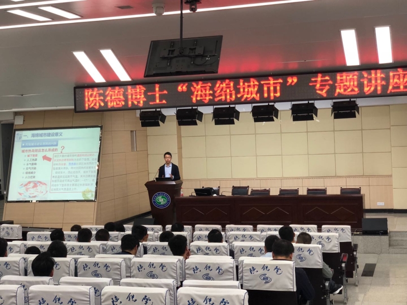 陈德的专题讲座从海绵城市建设的意义、海绵城市建设发展、海绵城市规划设计、海绵城市试点工程与海绵城市建设展望等五个方面进行深入浅出的讲解。讲座休息期间,学员们不断提问,陈德老师为学员们现场解疑,对学员们给予了很大鼓励。讲座长达两个多小时,学员们对“海绵城市”有了更为深入的了解,并希望学院能够多举办类似的讲座。