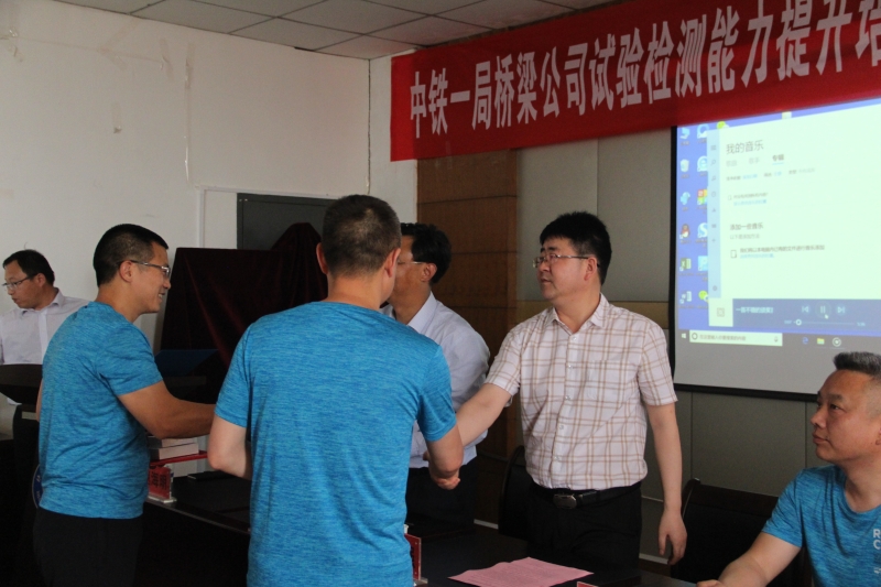 5月5日下午,中铁一局集团桥梁工程有限公司试验检测能力提升培训暨技能竞赛闭幕仪式在学院临渭校区十二楼会议室举行。学院继续教育部主任李秋全,公司人力资源部部长崔晓强,试验检测中心主任范国宏和21名学员出席闭幕式。