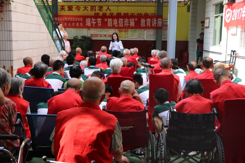 为了帮助金秋苑爱心护理院的老人们进一步增强防诈防骗意识和提高防诈防骗能力,2018年6月15日早上,由陕铁院继续教育部和陕铁院电气与信息工程系组织开展的“端午节‘防电信诈骗’教育专题讲座活动”在渭南市临渭区四马路金秋苑爱心护理院举行。