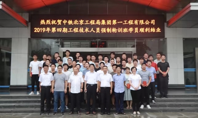 7月22日上午,中铁北京工程局集团第一工程有限公司2019第四期工程技术人员强制轮训班结业典礼在学院临渭校区举行。陕西铁路工程职业技术学院副院长王闯教授、继续教育部主任李秋全教授,中铁北京工程局一公司副总经理焦广彦、技术中心主任王永刚出席典礼。典礼由一公司人力资源部副部长武书姣主持。