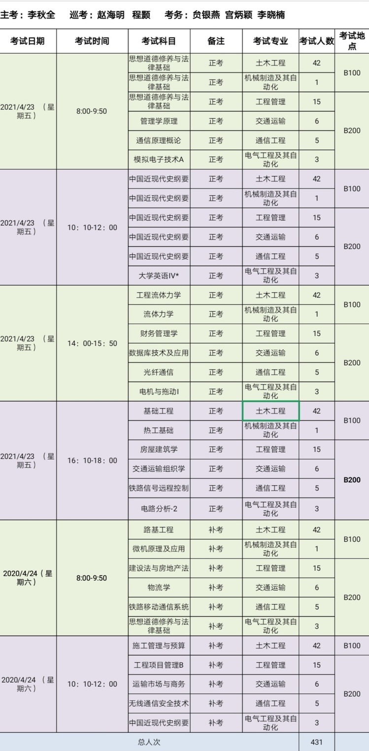 02.西南交通大学远程与继续教育学院2020级函授专升本第三学期期末考试安排