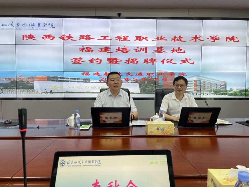 5月14日,张学钢副校长一行赴福建船政交通职业技术学院参加陕西铁路工程职业技术学院福建培训基地签约暨揭牌仪式。学校副校长张学钢、继续教育学院院长李秋全、福建船政交通职业学院党委副书记陈宜大、培训学院院长刘群勇出席本次会议。签约仪式由刘群勇院长主持,福建船政交通职业技术学院师生代表共同参加。