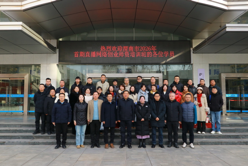 2026年1月21日上午,渭南市2026年首期直播网络创业培训师资班开班仪式在临渭校区学术报告厅举行,学校副校长刘明学、渭南市劳动就业服务中心主任杜文杰等领导和30名学员参加开班仪式,开班仪式由继续教育与培训学院院长滕春江主持。